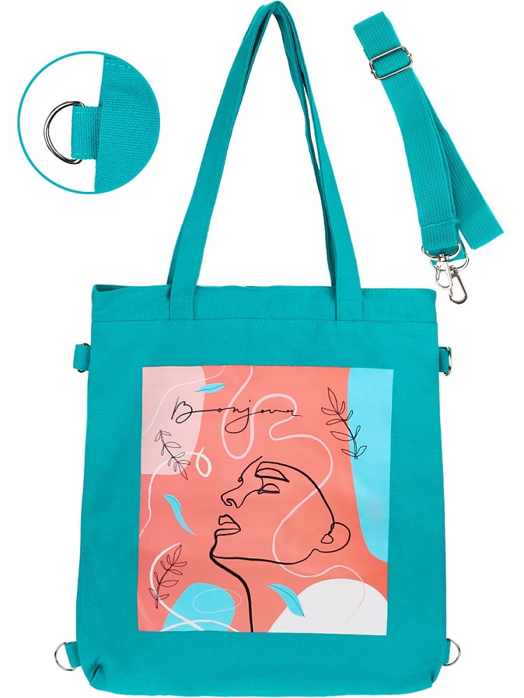 СУМКА-ШОППЕР БИРЮЗОВЫЙ ТЕКСТИЛЬ на мол ВДОХНОВЕНИЕ (СМ-1122) внут.карм,подкладка, 42х35 см