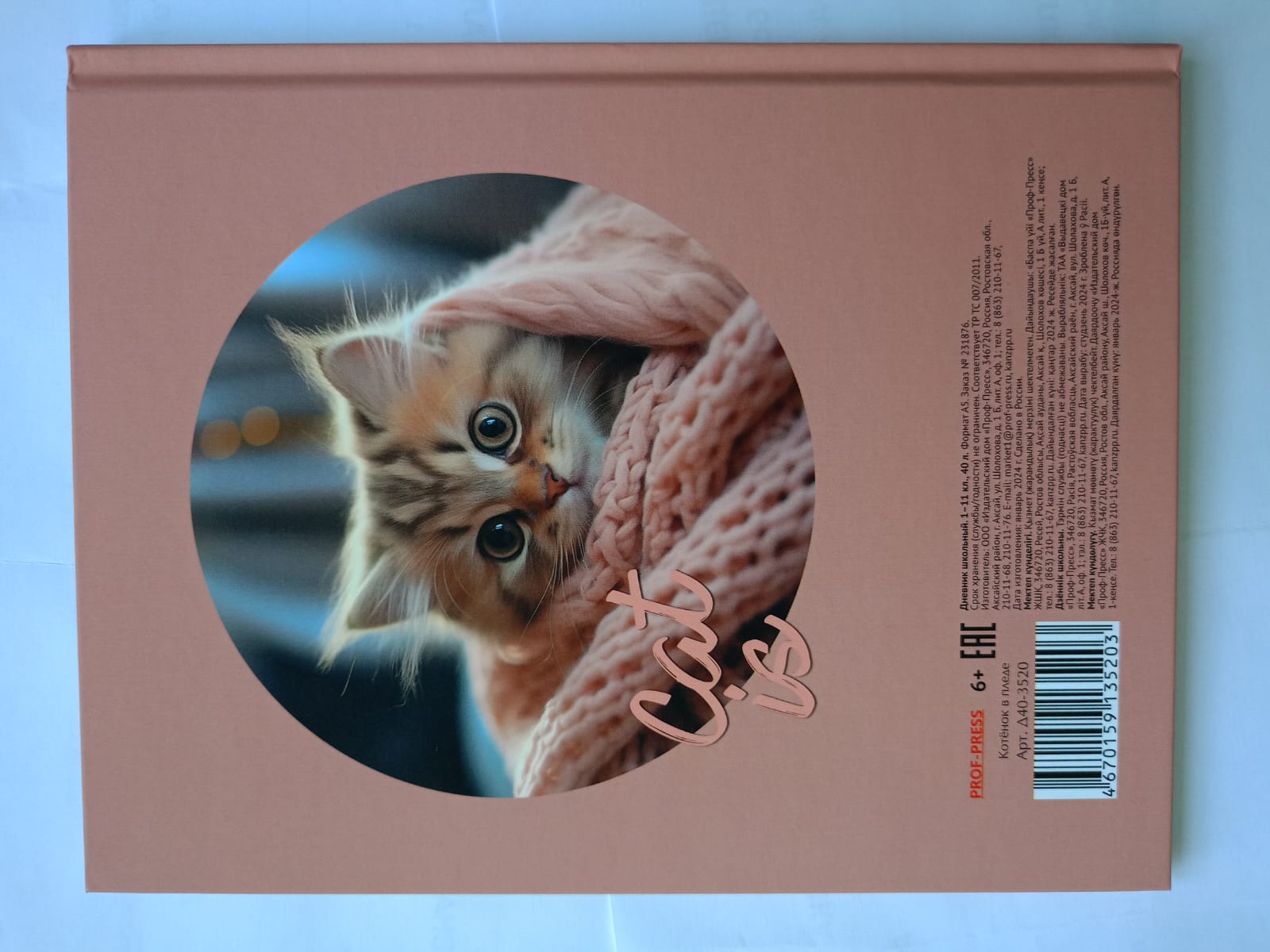 Дневник школьный Котёнок в пледе 40л 5-11кл