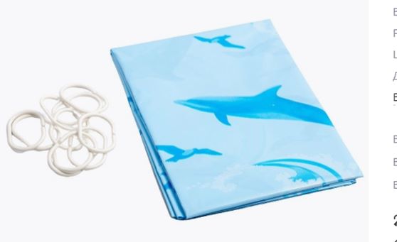 Штора для ванной комнаты Дельфин 180х180см 10 колец в комплекте