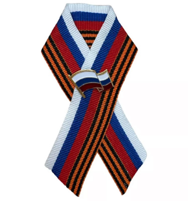 БРОШЬ "ДЕНЬ ПОБЕДЫ" ГЕОРГИЕВСКАЯ ТРИКОЛОР ЗНАЧОК "РОССИЯ" 1ШТ.(Б-3/8)