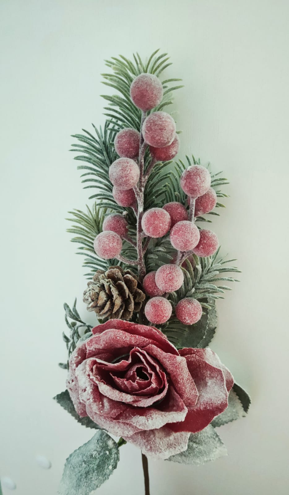 Ветка декор 0432-20 НГхвоя+роз крас+ягода (279687)