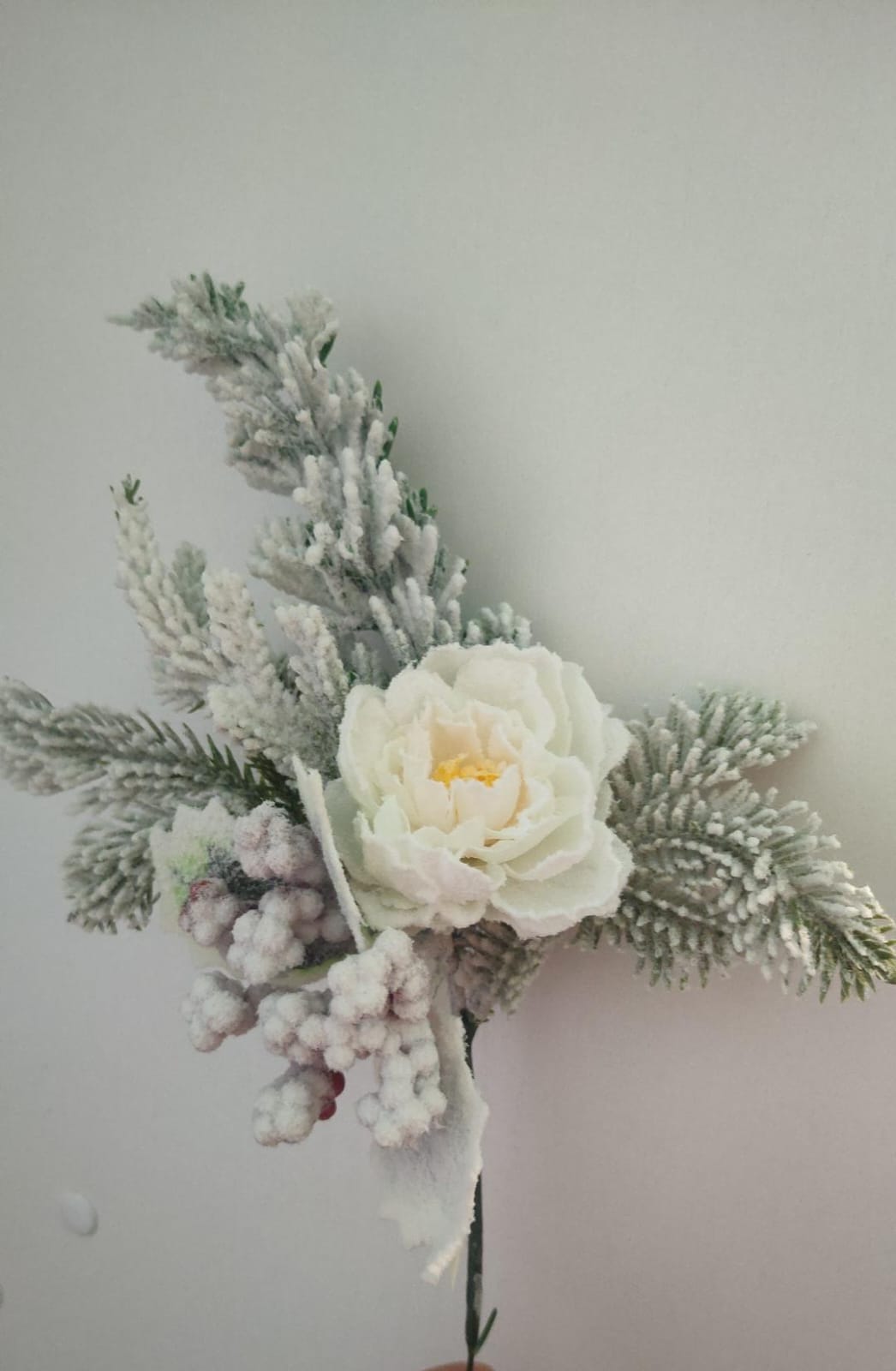 Ветка декор 9127-8 НГхвоя+роз бел+ягода мел(279685)