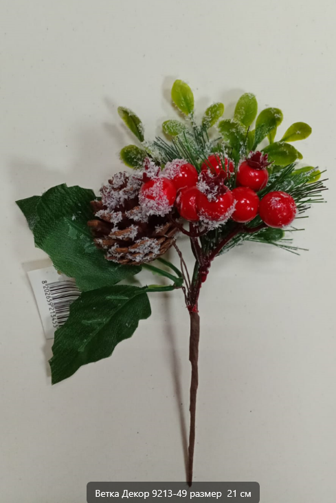 Ветка декор НГ(21см) ягод(крас)+хвоя+шиш 9213-45 (279643-3) СР